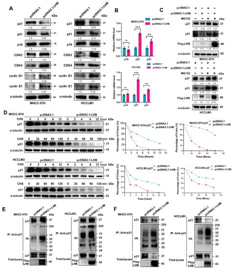 2.4. Overexpression of LHB Regulates Cell Cycle Progression by Enhancing p27 Ubiquitination