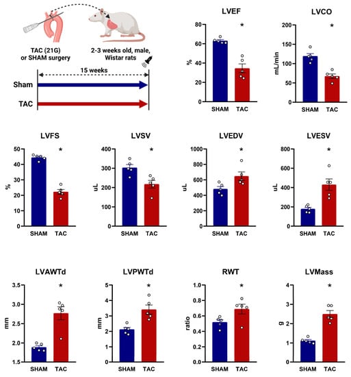 2.1. Echocardiographic Characterization of Pressure-Overload-Induced Cardiac Dysfunction in Rats