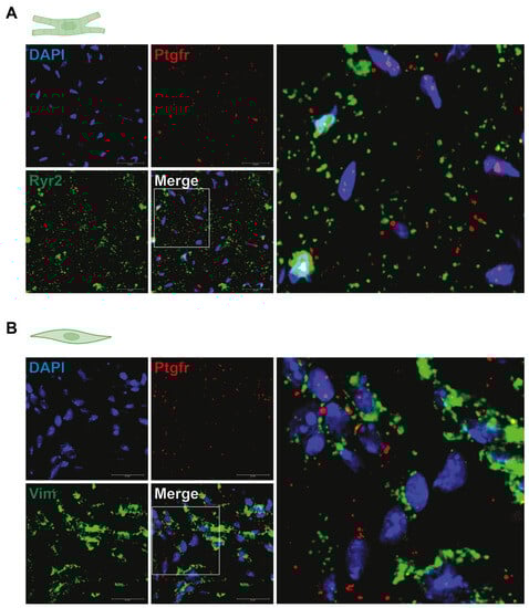 2.5. Ptgfr Is Expressed by Cardiac Fibroblasts and Cardiomyocytes