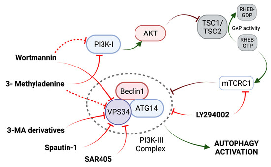 In general, PI3K inhibitors have limited potency and act in a non-specific manner, and the characterization of their pharmacological properties is still under investigation. Some authors point out that this lack of specificity of PI3K inhibitors makes them unsuitable for a clinical setting [48]. However, the chemical modification of autophagy inhibitors, as evidenced by the development of three 3-MAs [60], could be an effective strategy in the search for improved inhibitors.