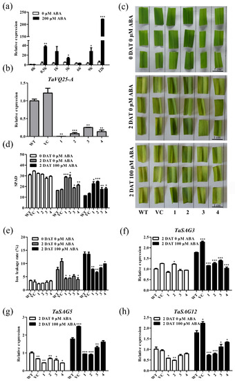 2.5. TaVQ25-A Is Involved in ABA-Mediated Leaf Senescence