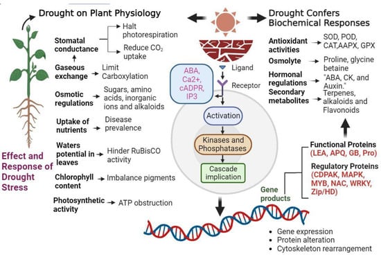 Broadly speaking, genes involved in drought stress response can be classified into functional genes that directly counteract environmental stress and regulatory genes that control these responses (Figure 3).