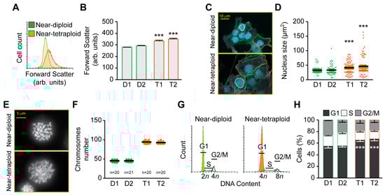 2.2. Characterization of Diploid and Tetraploid Clones
