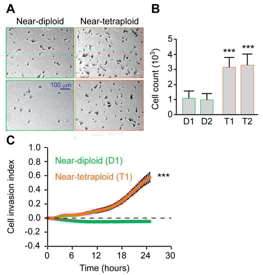 2.3. Tetraploid Clones Are More Motile and Invasive Than Diploid In Vitro