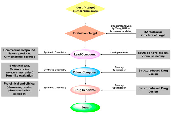 As a rational, scientific, and efficient drug design method, structure-based drug design plays an important role in the discovery of hit compounds, optimization of lead compounds, and development of innovative drugs. Since Captopril—the first drug discovered by SBDD—came on the market, the anti-HIV drugs Raltegravir and Amprenavir, the anti-tumor drugs Imatinib and Ponatinib, the anti-coagulant drugs Rivaroxaban and Dabigatran etexilate, the anti-viral drugs Oseltamivir and Boceprevir, and many other blockbuster drugs have come out one after another. As of July 2023, a total of over 70 drugs discovered using SBDD have been marketed, and a large number of excellent candidate drugs are in clinical and preclinical trials. Structure-based drug design has become a powerful means of designing, researching, and developing innovative drugs in the field of medicinal chemistry. In addition, diversity-oriented synthesis (DOS) [133], combinatorial chemistry [134], computer-aided synthesis planning (CASP) [135], artificial intelligence (AI) [136,137,138,139], robot systems, and other technologies have been used to explore novel chemical reactions, which has increased the number of synthetic blocks in organic synthesis, broadened the space of the chemical universe, and improved the possibility of pharmaceutical chemists to design a variety of ligand molecules. Therefore, we are bound to believe that SBDD will play an important role in drug research and development and continue to promote the process of novel drug discovery.
