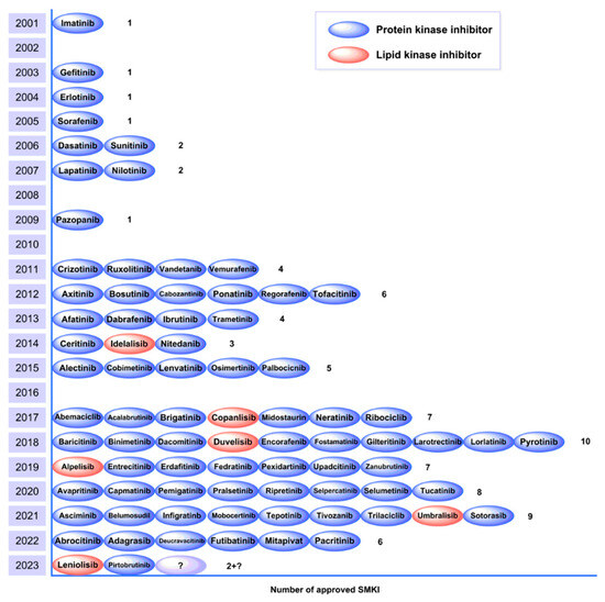 - Peng, W.; Nielsen, T.E.; Clausen, M.H. FDA-approved small-molecule kinase inhibitors. Trends Pharmacol. Sci. 2015, 36, 422–439. [Google Scholar]