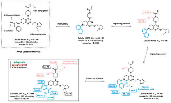 - Fell, J.B.; Fischer, J.P.; Baer, B.R.; Blake, J.F.; Bouhana, K.; Briere, D.M.; Brown, K.D.; Burgess, L.E.; Burns, A.C.; Burkard, M.R.; et al. Identification of the Clinical Development Candidate MRTX849, a Covalent KRASG12C Inhibitor for the Treatment of Cancer. J. Med. Chem. 2020, 63, 6679–6693. [Google Scholar] [CrossRef] [PubMed]