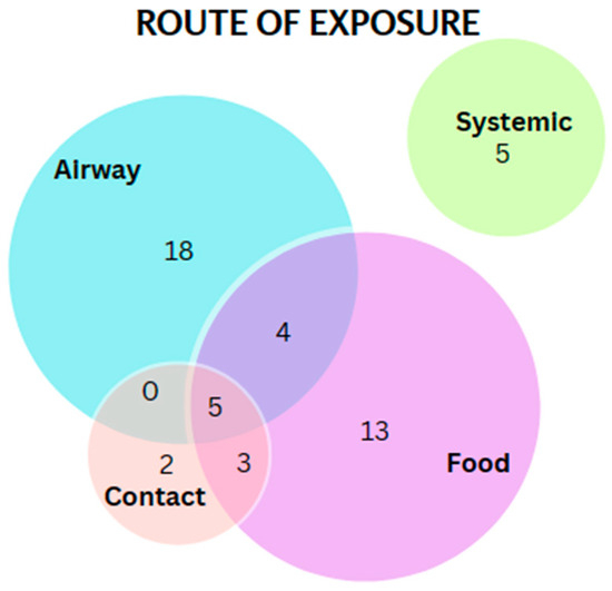 Five other allergens have been reported as sensitizers through all three routes and include cyclophilin (peptidyl-prolyl cis-trans isomerase) (Ara h 18, Bet v 17 and Mala s 6), thioredoxin domain-containing protein (Asp f 28, Mala s 13 and Tri a 15), superoxide dismutase (Asp f 6, Hev b 10, Pis v 4). The validated allergens of cannabis, including nonspecific lipid transfer protein (Can s 3) (with homology to Hev b 12, Amb a 6, Pru p 3) and profilin (Can s 2) (with homology to Bet v 2, Hev b 8 and Ara h 5) were also detected and are known to sensitize via multiple routes (Figure 8 and Supplementary Table S1).