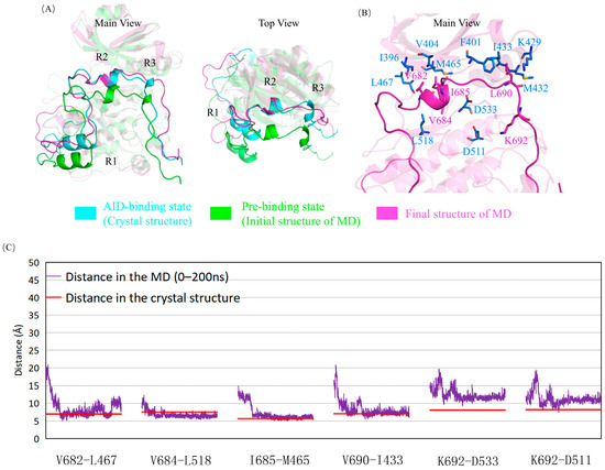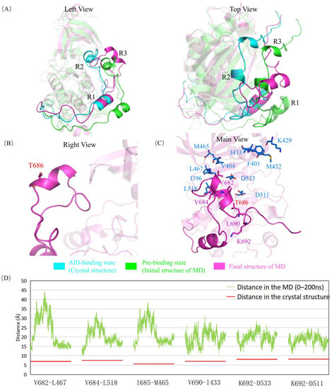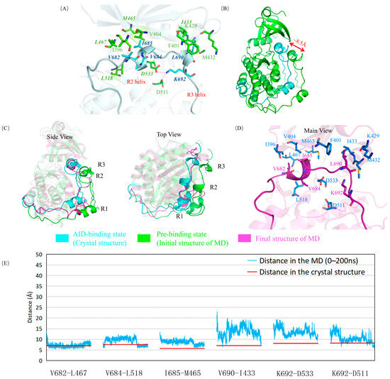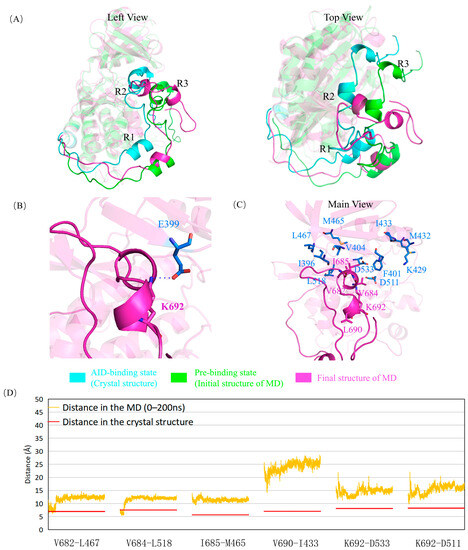 2.1. The Autoinhibition by AID Was Simulated Using Molecular Dynamics Simulation in Wild-Type DCLK1