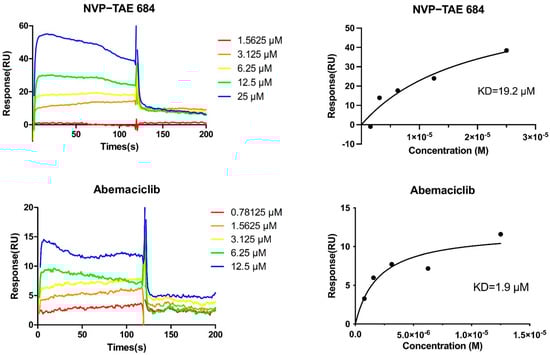 3.4. Surface Plasmon Resonance (SPR) Analysis