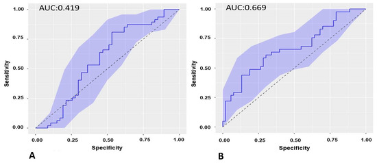 The ROC curve of the sST2 biomarker was calculated at the 3-month follow-up in the cohort of patients undergoing ECV with respect to 6-month recurrence, and the AUC was 0.669 (Figure 4B).