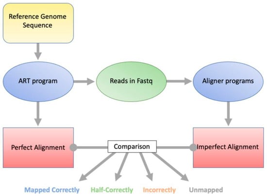 Here, we have provided a methodological overview and custom Python scripts that should enable a neophyte to use ART to produce simulated reads that match the characteristics of their biological data, use the tested aligner programs to map the reads, and then use our custom Python scripts to evaluate the effectiveness of each aligner. By doing so, one can make a data-based decision on which aligner program to use to map their biological reads.