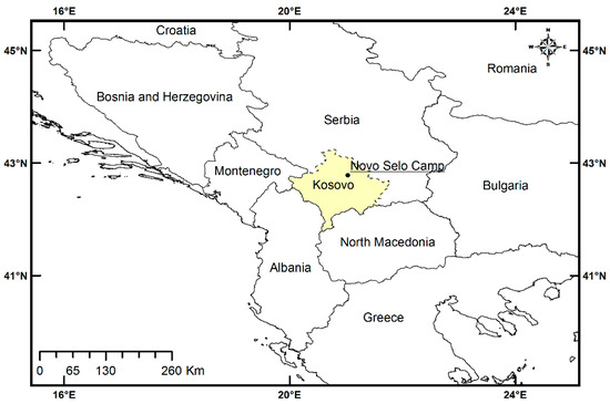 Sampling site. Map of the Republic of Kosovo with the approximate location of the international base in Novo Selo marked. Map was prepared with the use GADM data version 3.6.