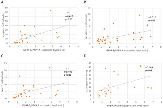 2.4. IGFBP-5/PAPP-A Correlations with Atrophic Mediators