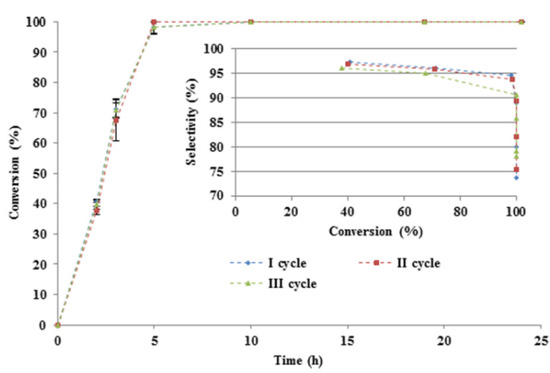 Thus, the undoubted benefit of continuous flow reactors is an ease of maintenance, which lies in the fact that the catalyst does not need to be separated from the reaction products and subjected to washing for subsequent use. On the other hand, the productivity, selectivity, and stability of the catalyst can be beneficial both in the batch and flow reactors, depending on the reaction parameters.
