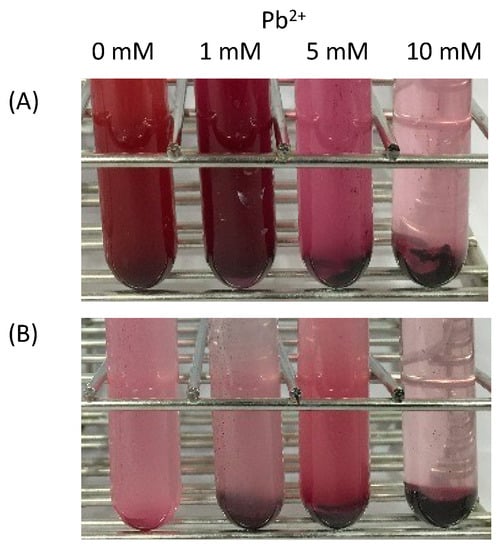 Changes in the culture color were dependent on the lead acetate concentration. (A) PS-1, (B) PS-2.