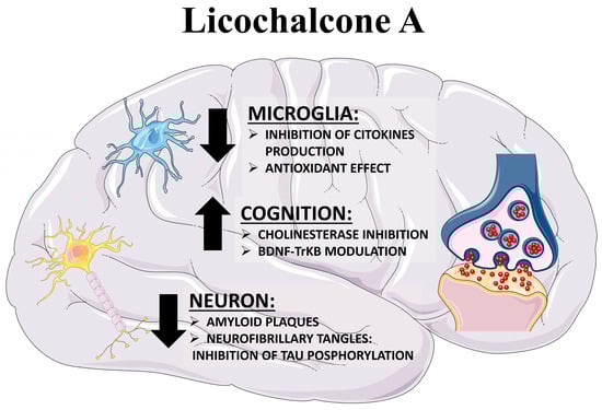 In any case, whether by promoting peripheral activation of the immune system or exerting an anti-inflammatory action on microglia, Lico-A represents a potential therapy against AD and cognitive loss [,]. The anti-inflammatory properties of Lico-A could help mitigate neuroinflammation, a key process in AD progression involving activated microglia and the release of proinflammatory cytokines like TNF-α and IL-1β.