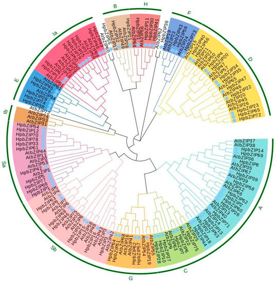 2.2. Phylogenetic Analysis of HpbZIPs
