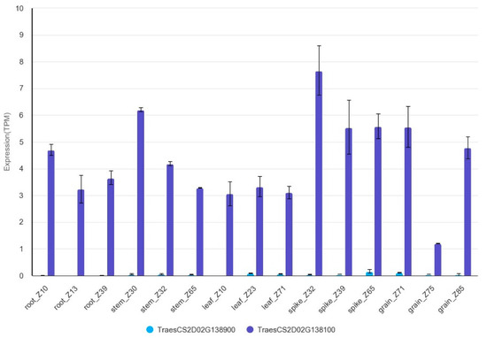 The expression of TraesCS2D02G138900 and TraesCS2D02G138100 in wheat.