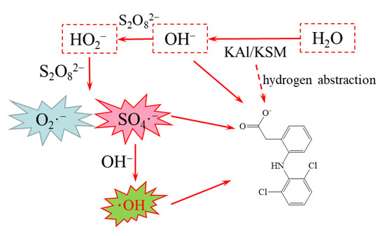 - Shi, H.; Zhou, G.; Liu, Y.; Fu, Y.; Wang, H.; Wu, P. Kinetics and pathways of diclofenac degradation by heat-activated persulfate. RSC Adv. 2019, 9, 31370–31377. [Google Scholar] [CrossRef] [PubMed]