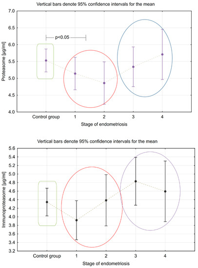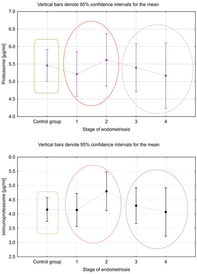 Wróbel, M.; Zuzanna, Z.; Ołdak, Ł.; Kalicka, A.; Mańka, G.; Kiecka, M.; Spaczyński, R.Z.; Piekarski, P.; Banaszewska, B.; Jakimiuk, A.; et al. Evaluation of Proteasome and Immunoproteasome Levels in Plasma and Peritoneal Fluid in Patients with Endometriosis. Int. J. Mol. Sci. 2023, 24, 14363. https://doi.org/10.3390/ijms241814363