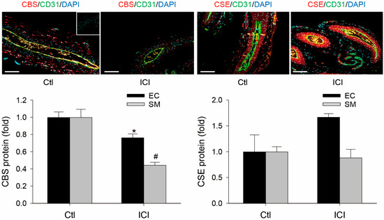 2.3. ICI Decreases Rat UA Endothelial and SM CBS Protein