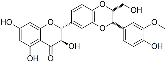 - Bijak, M. Silybin, a major bioactive component of milk thistle (silybum marianum l. Gaernt.)-chemistry, bioavailability, and metabolism. Molecules 2017, 22, 1942. [Google Scholar] [CrossRef]