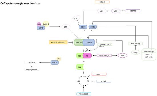 Multiple factors involved in the regulation of the cell cycle are associated with a resistance to CDK4/6is, the loss of drug target genes, and the overexpression of other genes involved in the progression of the cell cycle (Figure 1).