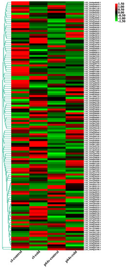 Hierarchical clustering of wild rice and Pei’ai 64S AP2/EREBP family genes expression in cold treatment. The color scale represents a log2-fold change.