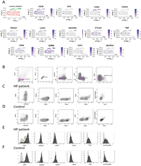 In our study on HP, we focused on CD4 and CD8 T cells extracted from single-cell data obtained from the HP patient. These T cells were reclustered, resulting in distinct populations expressing CD4 or CD8. Within the CD4+ population, regulatory T cells (Treg) were identified through the expression of FoxP3 (