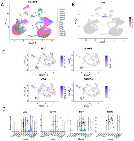 Figure 4B,C). After subsetting T cells by CD3D expression, we examined the expression levels of key Treg-associated markers, including TIGIT, FOXP3, CD4, and ENTPD1 (
