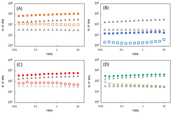 | Hardness (kPa) | Compressive Modulus (kPa) | Toughness (kJ/m3) | G′ (Pa) | G″ (Pa) | |