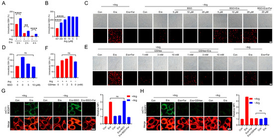 2.2. Arginine Promotes Erastin-Induced Ferroptosis by Reducing GSH Levels
