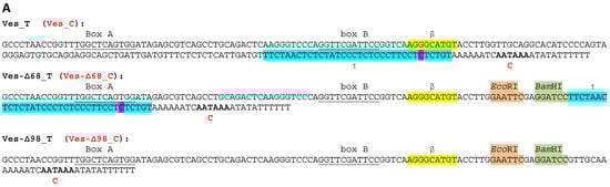 2.3. Effect of the U6 Promoter as Well as Deletions and Substitutions on the Level of Ves Transcripts and Their Polyadenylation