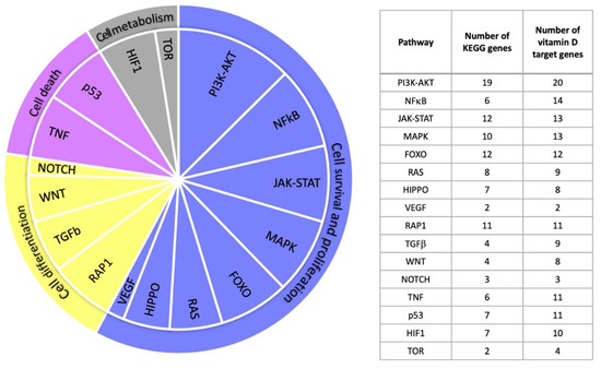 2.2. Vitamin D Target Genes Involved in KEGG Signal Transduction Pathways
