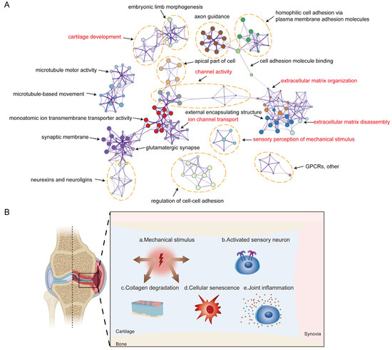 Another innovation of this study is focusing on the significance of mechanical stress and activated neuron regulation in OA, which differed from previous research that primarily focused on inflammation and cartilage degradation [12,21,22]. Recent studies have categorized OA into four subtypes [12]. Using a self-contrast design in our study, as opposed to previous studies with samples from healthy volunteers and OA patients, may have contributed to the differences in research outcomes. Our sequencing results identified five key features of OA: abnormal activation of mechanical stress signals, activation of neuronal ion channels, activation of inflammatory pathways, cellular senescence, and abnormal collagen metabolism in cartilage.