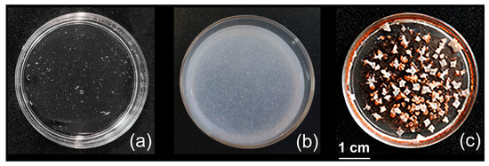 Moreover, the composite coatings did not leave the surface upon treatment with a 4 N NaCl solution. Under these conditions, the binary IPEC dissociated down to the initial components, Alg and Pq10 [54]. Further drying of the composite sample, covered with the salted solution, resulted in the film, with white NaCl crystals on the top (Figure 3c).