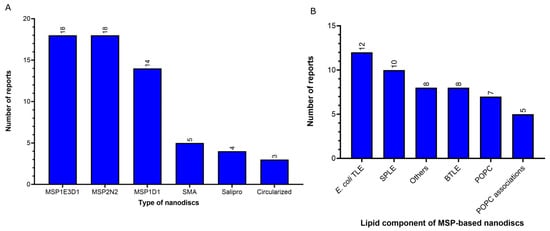 - Nanodiscs: 62 of 312 reports (20%). In this group, the most widely used type is the membrane scaffold proteins (MSP)-based nanodiscs, which is present in 50 of 62 reports.