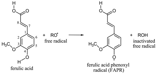 - Amić, A.; Marković, Z.; Dimitrić Marković, J.M.; Milenković, D.; Stepanić, V. Antioxidative potential of ferulic acid phenoxyl radical. Phytochemistry 2020, 170, 112218. [Google Scholar] [CrossRef]