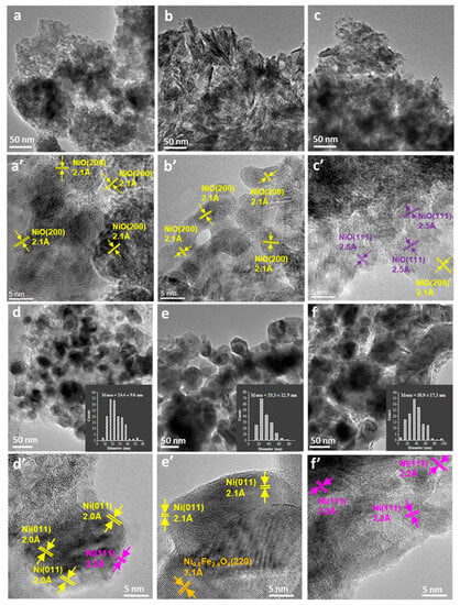 2.3. TEM Analysis of the Cu/NiMOx Catalysts