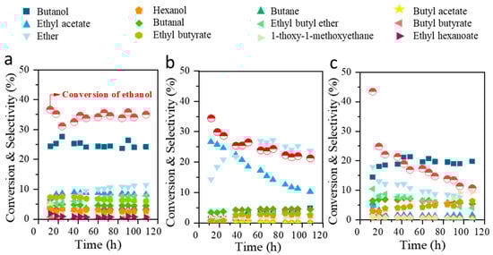 - Li, J.; Lin, L.; Tan, Y.; Wang, S.; Yang, W.; Chen, X.; Luo, W.; Ding, Y. High performing and stable Cu/NiAlOx catalysts for the continuous catalytic conversion of ethanol into butanol. ChemCatChem 2022, 14, e202200539. [Google Scholar] [CrossRef]
