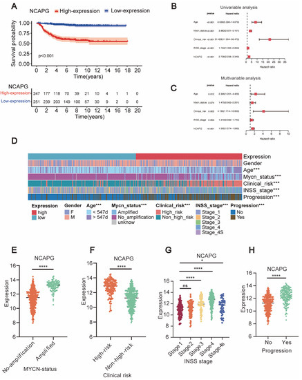 Univariate and multivariate analysis of NCAPG expression and neuroblastoma patient survival.