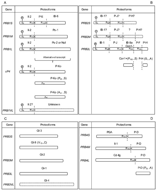 - Lyons, K.M.; Azen, E.A.; Goodman, P.A.; Smithies, O. Many protein products from a few loci: Assignment of human salivary proline-rich proteins to specific loci. Genetics 1988, 120, 255–265. [Google Scholar] [CrossRef]
