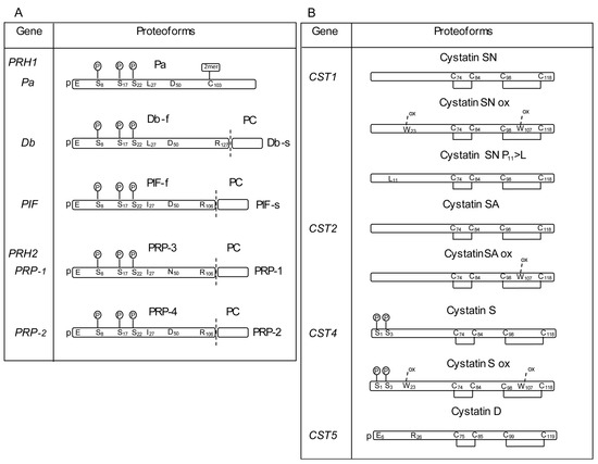 - Manconi, B.; Liori, B.; Cabras, T.; Vincenzoni, F.; Iavarone, F.; Castagnola, M.; Messana, I.; Olianas, A. Salivary Cystatins: Exploring New Post-Translational Modifications and Polymorphisms by Top-Down High-Resolution Mass Spectrometry. J. Proteome Res. 2017, 16, 4196–4207. [Google Scholar] [CrossRef] [PubMed]