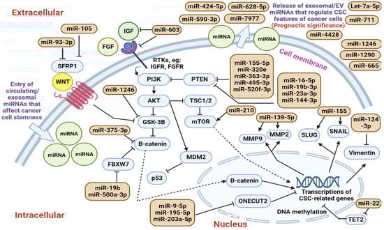 6.1. Roles of Circulating CSC-Regulating miRNAs in Modulating Cancer Cell Stemness