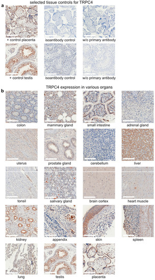 - Beck, B.; Lehen’kyi, V.Y.; Roudbaraki, M.; Flourakis, M.; Charveron, M.; Bordat, P.; Polakowska, R.; Prevarskaya, N.; Skryma, R. TRPC channels determine human keratinocyte differentiation: New insight into basal cell carcinoma. Cell Calcium. 2008, 43, 492–505. [Google Scholar] [CrossRef]