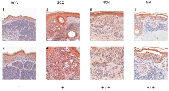 - Ackermann, K.; Wallner, S.; Brochhausen, C.; Schreml, S. Expression Profiles of ASIC1/2 and TRPV1/4 in Common Skin Tumors. Int. J. Mol. Sci. 2021, 22, 6024. [Google Scholar] [CrossRef]
