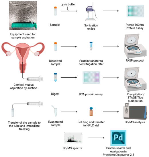 Oždian, T.; Vodička, J.; Dostál, J.; Holub, D.; Václavková, J.; Ješeta, M.; Hamerníková, B.; Kouřilová, P.; Malchar, O.; Dvořák, V.; et al. Proteome Mapping of Cervical Mucus and Its Potential as a Source of Biomarkers in Female Tract Disorders. Int. J. Mol. Sci. 2023, 24, 1038. https://doi.org/10.3390/ijms24021038