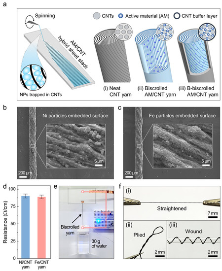 - Lima, M.D.; Fang, S.; Lepró, X.; Lewis, C.; Ovalle-Robles, R.; Carretero-González, J.; Castillo-Martínez, E.; Kozlov, M.E.; Oh, J.; Rawat, N.; et al. Biscrolling Nanotube Sheets and Functional Guests into Yarns. Science 2011, 331, 51–55. [Google Scholar] [CrossRef] [PubMed]