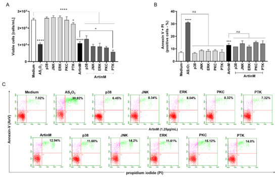 2.6. ArtinM-Induced Raji Cell Apoptosis Is Not Affected by Pharmacological Inhibitors of the p38 MAPK, JNK, ERK, PKC, and PTK Signalling Molecules